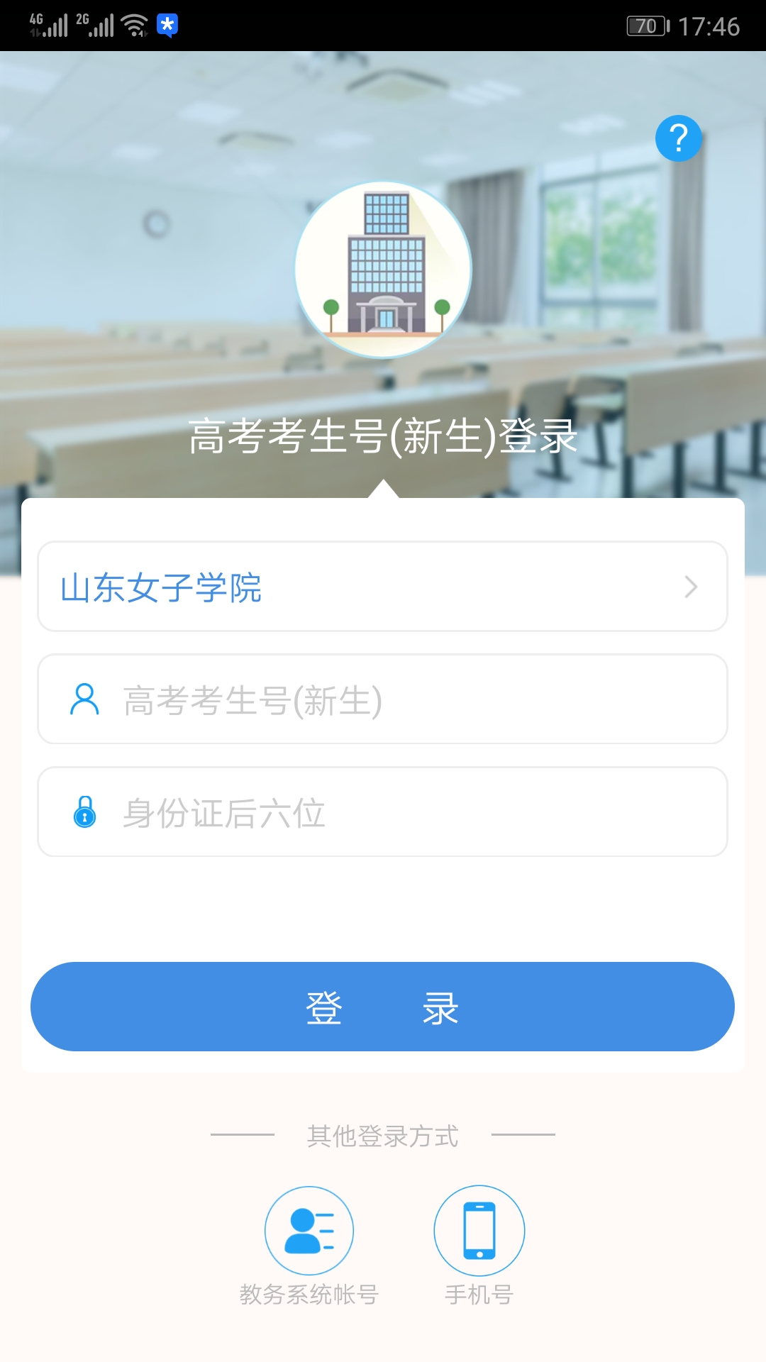 等到新生正式入学后,大家选择教务系统账号登录模式,输入学号和默认密码(身份证后六位),就可以正式登录APP并修改默认密码。目前你以高考考号登录后,很多功能是不开放的。