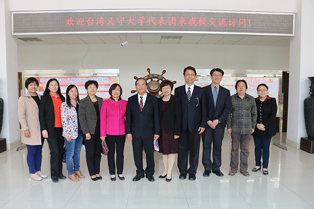 4月11日下午,台湾义守大学校长萧介夫、学务处处长危永中、两岸事务处副处长洪志勋一行访问我校。学校党委书记郭翠芬、副书记宿建沛、副校长王淑霞接待了访问团,学校国际交流合作处、学生处及部分二级学院负责人参加了会谈。