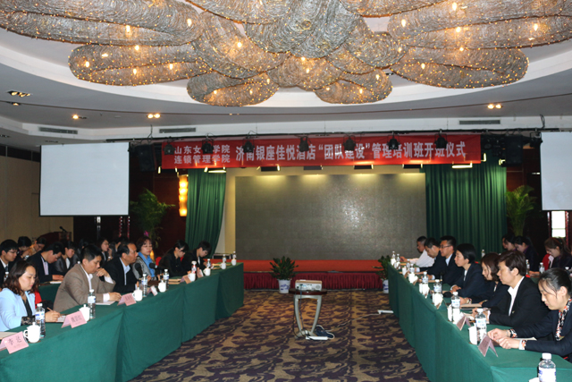 2016年4月19日下午,连锁管理学院银座佳悦酒店“团队建设”培训班在济南银座佳悦酒店第三会议室举行开班仪式。山东女子学院党委委员、副校长刘正林,济南银座佳悦行政总监杜敬出席仪式,山东女子学院连锁管理学院相关负责人、师生代表及济南佳悦各部门经理、主管等共80余人参加了仪式。