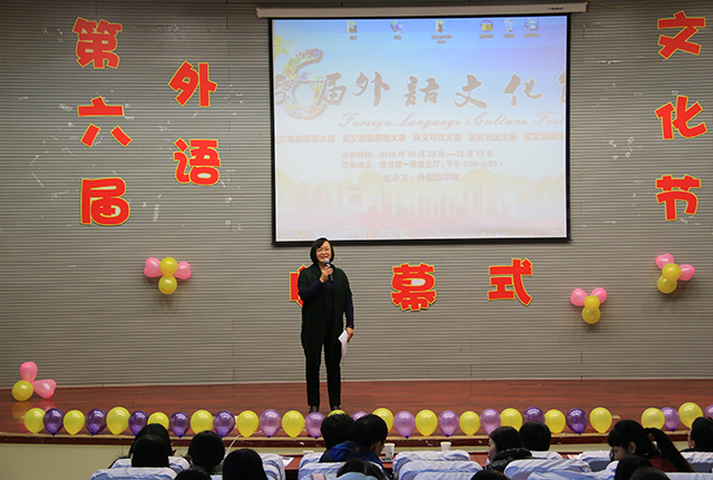 12月17日下午,在学校各部门的大力支持下,由外国语学院主办,大学外语教学部承办的第六届外语文化节闭幕式在图书馆一楼报告厅隆重举行。学校副院长王淑霞出席闭幕式并致辞。外国语学院负责人及部分师生代表参加了本次活动。
