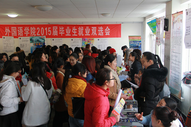 1月10日上午,由学校招生就业处、外国语学院、教育学院联合举办的2015届毕业生专场就业双选会分别在一号、二号教学楼隆重举行。学校副院长贺兴利及相关院部、处室负责人莅临本次就业双选会,近千名毕业生参加了此次双选会。
