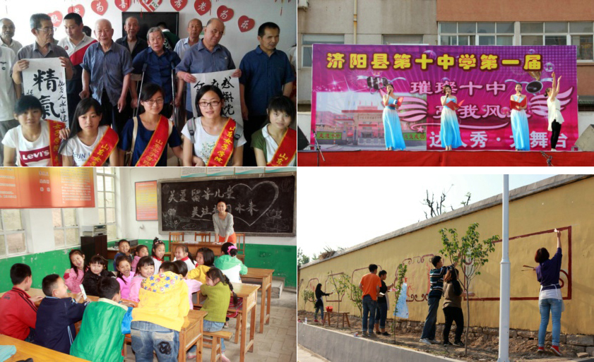 女院共青团将志愿服务作为“立德树人”的重要平台,多措并举将大学生志愿服务作为实践育人的重要载体。在对口中学团建工作中,外国语学院赴济阳与济阳第十中学合办“璀璨十中 亮我风采”达人秀活动,加强了校地合作,在增强中学团组织活力的同时,提升高校团干部的工作水平;艺术学院师生与长清区孝里镇党委联合开展的“美丽乡村建设”志愿服务活动,为当地村庄设计绘制以感恩、忠孝文化为主要内容的乡村画廊,传播了时代风尚;信息技术学院学生组织爱心义卖活动,以义卖矿泉水的形式,帮助身患白血病的同学筹集善款,体现了大学生“奉献、友爱、互助”的志愿服务精神;会计学院以“爱心陪伴童年 共圆青春梦想”为主题的“童心圆”项目走进长清区万德镇义灵关村,为留守儿童送去关爱和温暖;校学生会和青年志愿者协会组织了多次结核病防治拓展活动和赴敬老院院关爱老人活动,并与山东大学附属生殖医院共办“青年健康周”大型公益图片巡展和健康讲座。女院学子积极投身志愿服务,用实际行动践行社会主义核心价值观,用志愿服务精神浇灌成长的青春之树。