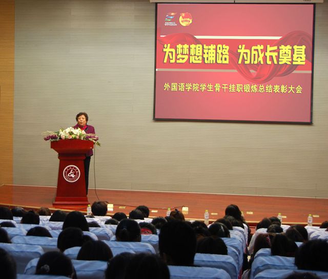 10月31日下午,外国语学院“为梦想铺路 为成长奠基”2013学生暑期社会实践暨学生骨干挂职锻炼总结表彰大会在图书馆一楼报告厅召开。党委副书记宿建沛、团委负责人及外国语学院有关领导出席会议。