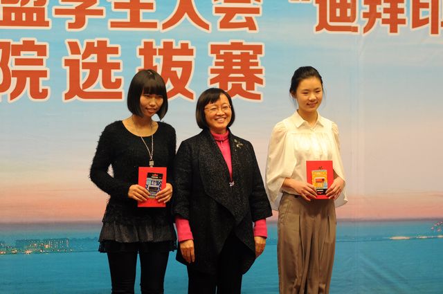 比赛最终决出一等奖2名,二等奖3名,三等奖5名,优秀奖9名,以及最具潜力奖和最具人气奖。来自外国语学院的耿洁和经济管理学院的倪雅倩同学获得本次比赛一等奖。获得本次比赛前十名的选手将参加国际交流合作处举办的“迪拜印象”选拔性培训。培训为期两周,由中外教师对学生进行即兴演讲、涉外礼仪和跨文化交际能力方面的培训。此后,由学校成立专家组对10位选手的综合素质进行考查,最终推举2名学生参加2013年3月24日-3月28日在迪拜举行的世界女子教育联盟学生大会。