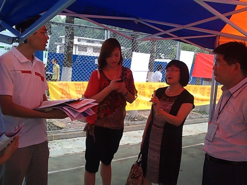 今年学校领导和招生就业处高度重视招生宣传工作,提前选派有招生经验的教职工前往省内外各市地参加高招会。尤其是校领导冒着酷暑,特意来到招生咨询会场,与招生工作人员分别接待家长和学生,极大地鼓舞了招生人员的工作热情,增长了学生、家长的填报我校各专业的信心。虽然天气闷热潮湿,但是我院咨询台前,前来的咨询的学生和家长络绎不绝,气氛热烈。王院长和招生人员汗流浃背,顾不上休息与喝水,忘记了闷热与辛苦,抓住机会努力把咨询和宣传工作做到位。
