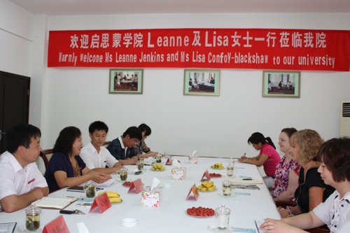 2010年7月1日,澳大利亚启思蒙学院服务与艺术产业中心主任Leanne女士与旅游系主任Lisa女士一行两人到我院进行中澳合作办学考察与交流工作。上午九时,学院在学校第一会议室举行了隆重的欢迎仪式,旅游学院院长王爱英教授,旅游学院党总支副书记张明副教授,旅游学院党总支副书记王仕忠副教授,旅游学院副院长李黎明副院长以及旅游学院各教研室主任参加了欢迎仪式。