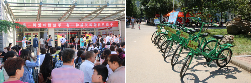 另外,学校免费“绿色自行车”也选择在开学当天亮相,为新同学上了环保的第一课。经济管理学院“绿之源”环保协会与学校后勤处、校友会共同在毕业季开展了“减负毕业行囊 捐赠环保自行车”活动,获赠的自行车免费供学校师生使用,对于提高师生的环保意识,共建绿色女院起到积极作用。