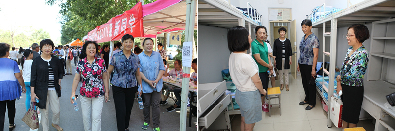 学校校长范素华、党委副书记宿建沛、副校长贺兴利来到学生注册处、各学院报到处、公寓等迎新点,检查迎新工作情况,看望前来报道的新生及其家长。校领导与新生和家长亲切交谈,对新生表示热烈欢迎,同时慰问了现场工作人员和大学生志愿者。学校相关部门负责人一同来到迎新现场。