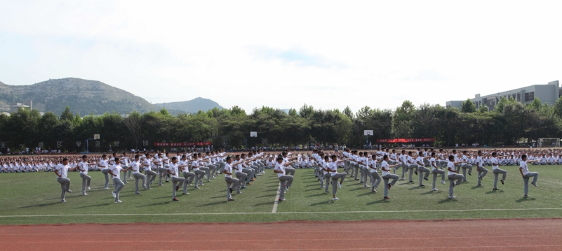 9月9日上午,学校2016级新生军训汇报表演暨总结表彰大会在田径场隆重举行。学校领导范素华、宿建沛、王淑霞、汪琦、贺兴利、刘正林,中国人民解放军某部队承训教官出席会议。相关部门单位负责人,带队辅导员班主任以及2016级全体新生参加了大会。大会由副校长王淑霞主持。
