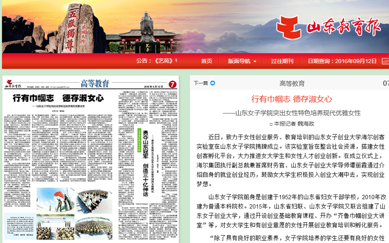 【媒体看女院】山东教育报:行有巾帼志 德存淑女心