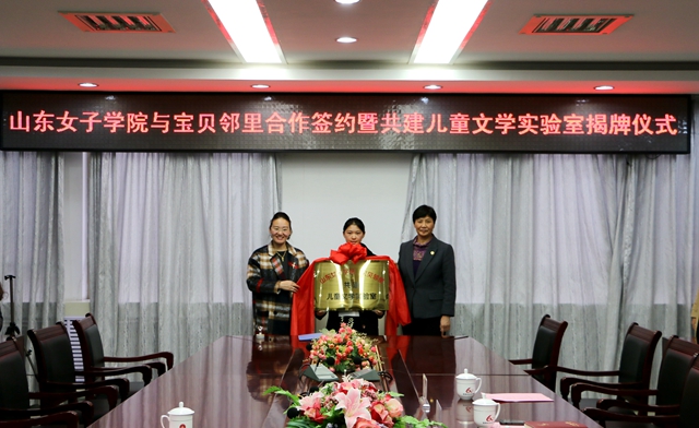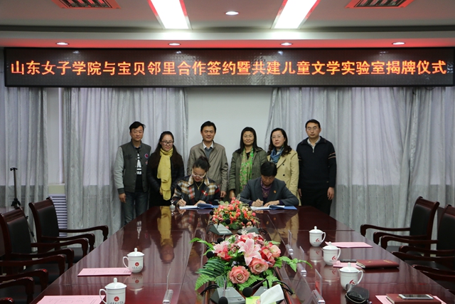 最后,范素华和周万迎共同签订《山东女子学院与山东宝贝邻里电子商务有限公司合作协议书》,并为儿童文学实验室揭牌。