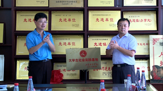 7月18日,学校团委、保卫处、继续教育学院、艺术学院、旅游学院相关负责同志等一行8人赴菏泽市定陶区陈集镇我校“第一书记”帮包村陈集村、保宁村、台楼村进行走访,看望学校派出挂职的“第一书记”和在此开展大学生暑期“三下乡”社会实践活动的师生们。定陶区区委副书记宁继红、陈集镇党委书记席云明为我校社会实践基地揭牌。