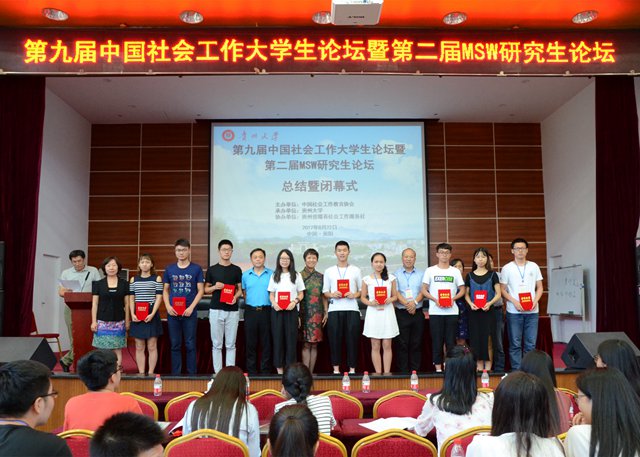 近日,第九届中国社会工作大学生论坛暨第二届MSW研究生论坛在贵阳顺利举办。来自全国120多所高校的160名社会工作专业本科生及64名MSW研究生参加论坛。我校社会与法学院2014级社会工作专业本科生张杰的论文成功入选并获三等奖。