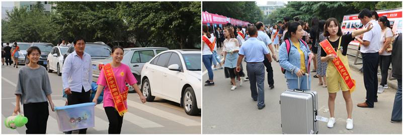 新学期开学后不久,学校专门召开了迎新工作协调会,对迎新工作作了周密组织和精心安排。各相关部门通力合作,确保了迎新工作的顺利进行。学校充分发挥了新媒体的线上优势,各学院纷纷通过网络、微信、微博、QQ群等开展迎新活动,既提高了工作效率,也赢得了新生和家长的认可,成为迎新工作中的一大亮点。同时,迎新工作人员坚持用“人性化服务”和“微笑服务”完成接站、咨询、引导、讲解、导览、后勤保障等迎新服务。接站车上,给每位新生发放报到流程图、校园平面图,学校宣传手册;学校大门设立服务处,报到现场设立家长休息处,配备了免费平安电话、桶装水;设立了“资助政策咨询台”和“入学绿色通道”等。