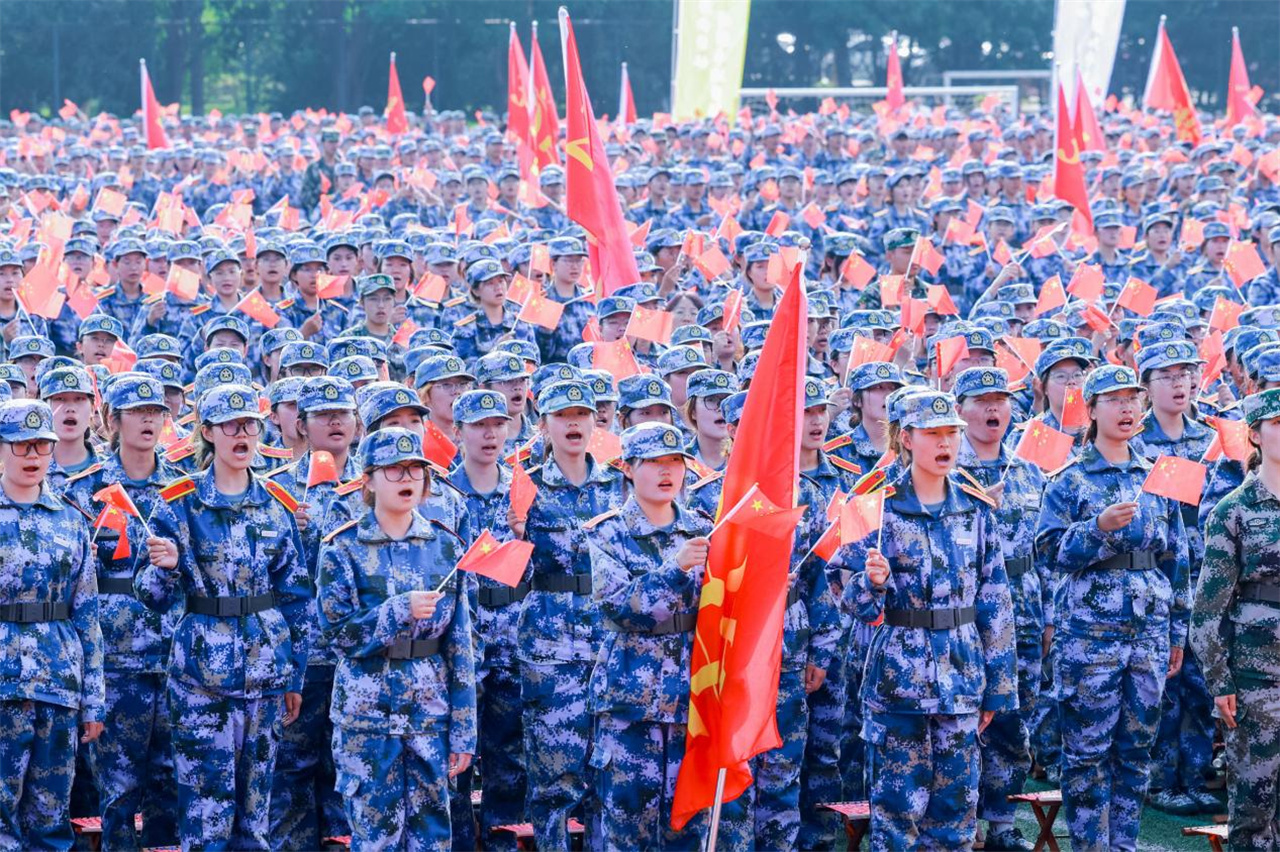 典礼在庄严的升国旗仪式中拉开了序幕。由2024级新生组成的45个方阵口号洪亮、步伐整齐、英姿勃发,依次经过主席台接受检阅。铿锵的脚步、昂扬的面庞,许下了“请党放心 强国有我”的铮铮誓言,赢得现场的阵阵掌声。