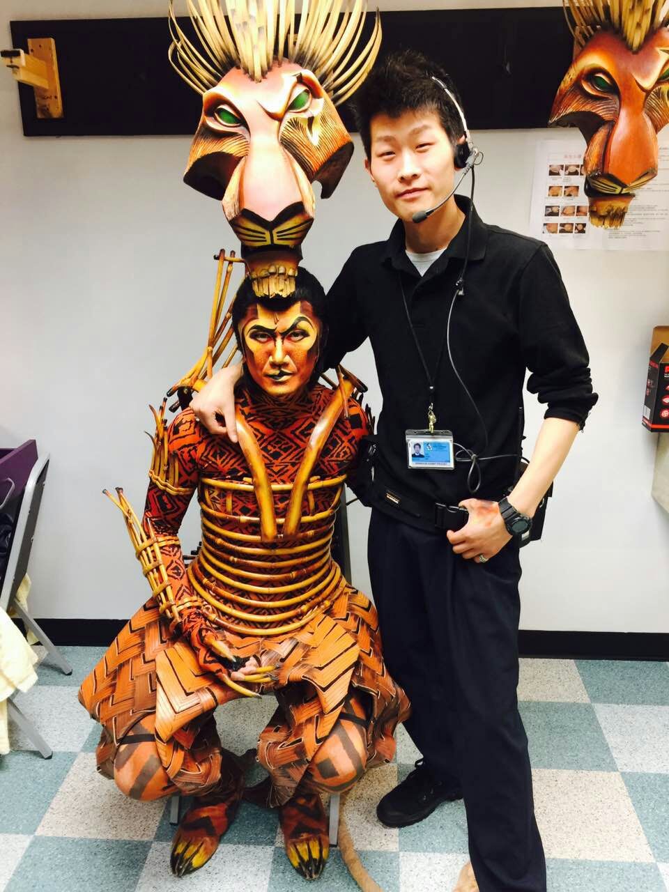 刘峰:男,11级人物形象设计专业的学生,于14年毕业。毕业后直接前往上海发展,现在就职上海迪士尼旅游度假区有限公司,任职华特迪士尼大剧院在演的百老汇音乐剧《美女与野兽》中文版妆发组的主管,负责音乐剧《狮子王》的妆发。能负责这两部戏让我很骄傲,它们让我近距离接触感受百老汇音乐剧制作班底的强大细致,从而影响至我以后的工作态度。收获了人生职业生涯中的第一箱宝藏.当然,每次秀场的演出,我都要根据舞台经理提供的演员阵容来做出相应的专业调整,处理突发状况,确保秀完整顺利的演出.