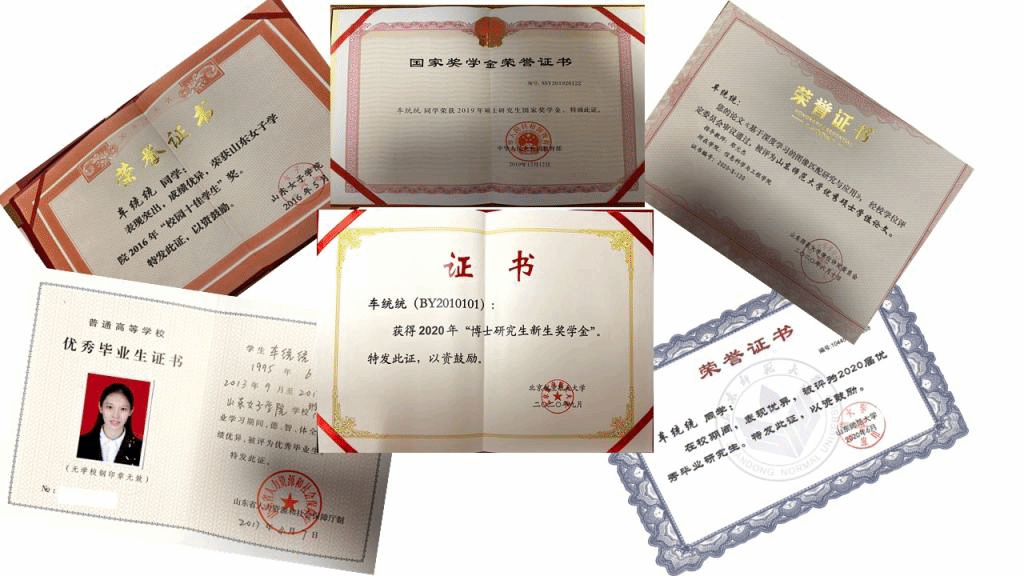 2013-2017年本科就读于山东女子学院数据科学与计算机学院,在此期间,担任2013级计算机科学与技术(金融信息)班级班长、院学生会副主席并连续三年被评为优秀学生干部;曾获得七次校级一等奖学金、两次国家励志奖学金、一次省政府奖学金;曾获得“2016年山东女子学院校园十佳学生”和”2017年山东省优秀毕业生” 等荣誉称号。