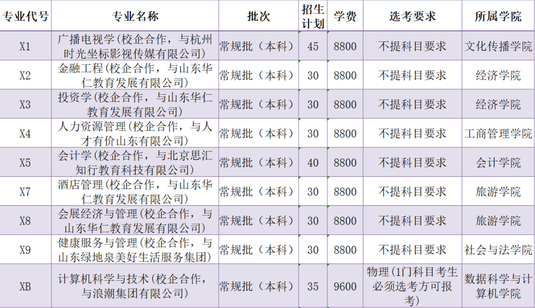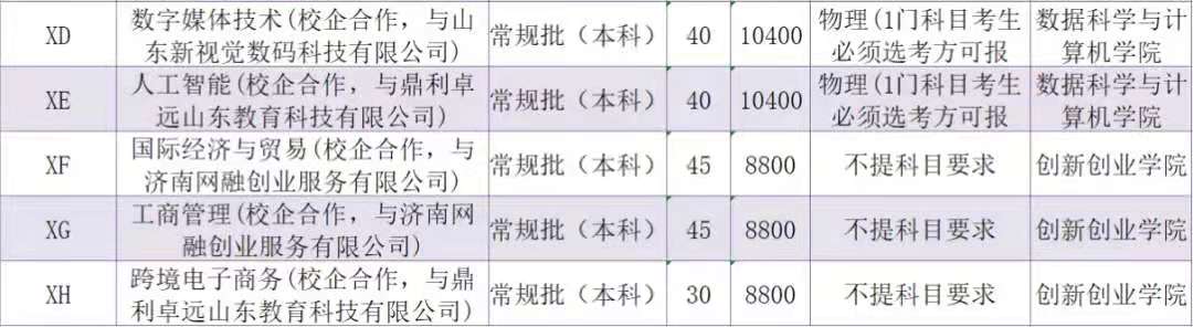 2、山东省考生报考我校本科专业(计算机类、计算机科学与技术校企合作、数字媒体技术校企合作、人工智能校企合作)须选考物理,其他本科专业没有科目要求限制。所有专科层次的专业没有科目要求限制。