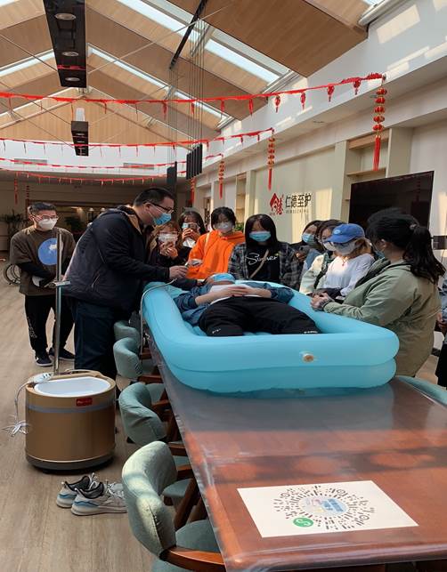 专业教师给学生演示适老化产品的使用(把课堂搬到企业)