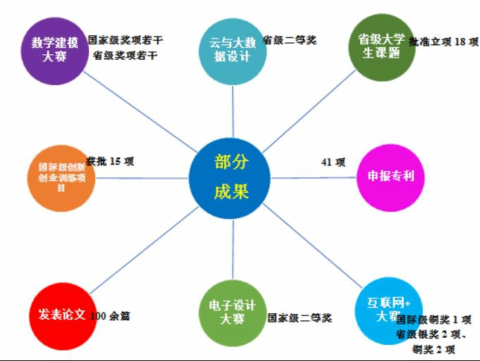 本专业学生积极参与各类大赛并多次获奖,包括全国大学生数学建模竞赛、中国大学生计算机设计大赛、全国高校数字艺术设计大赛、蓝桥杯全国软件和信息技术专业人才大赛、“团谱杯”山东省大学生数字媒体创意大赛、全国互联网+创新创业大赛、全国大学生电子设计大赛、全国信息技术应用水平大赛、“挑战杯”全国大学生科技作品竞赛等学科竞赛国家级奖项。近二年部分成果如下: